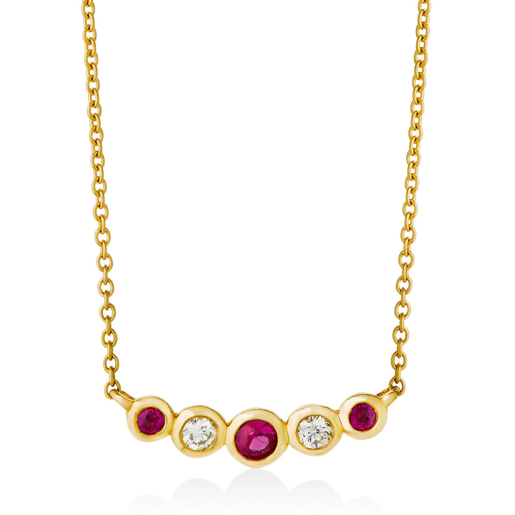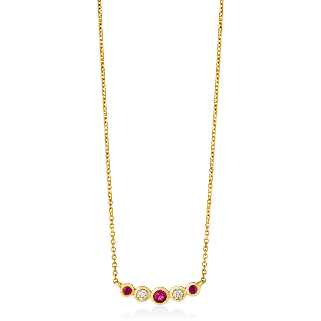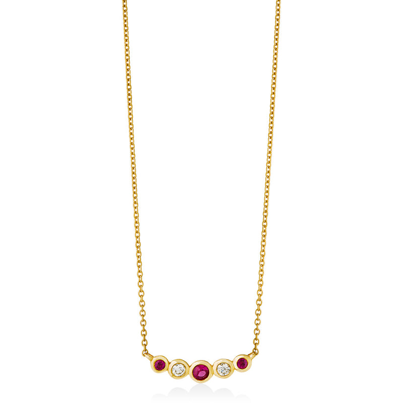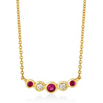 18ct Yellow Gold Rub Set Round Cut Ruby and Diamond Necklace