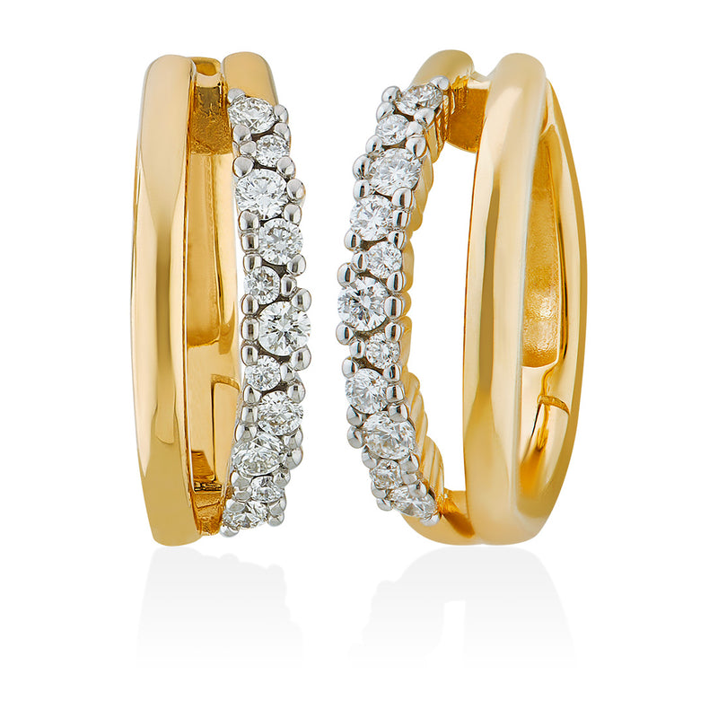 18ct Yellow Gold Three Claw Set Round Brilliant Cut Diamond Hoop Earrings with a Hook and Hinge Fitting