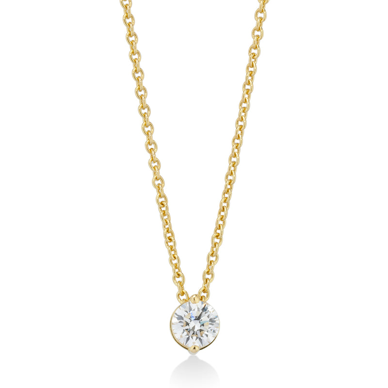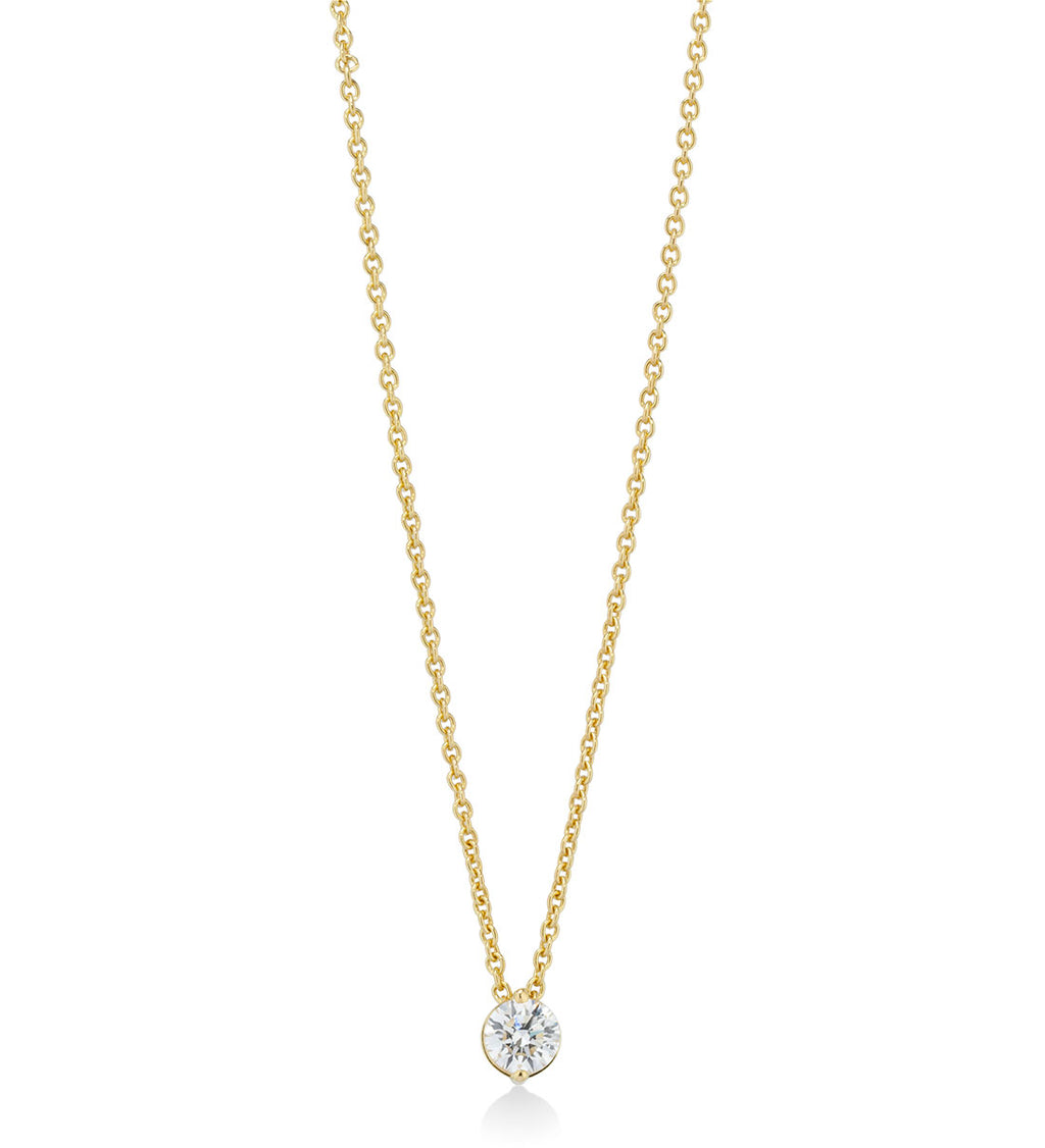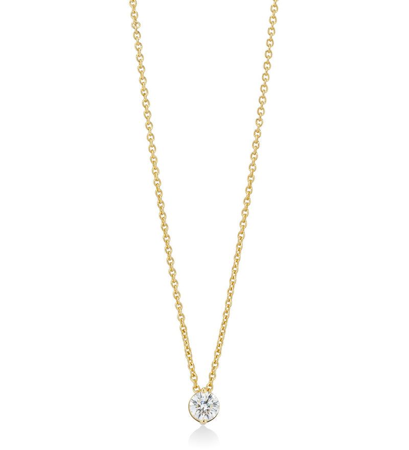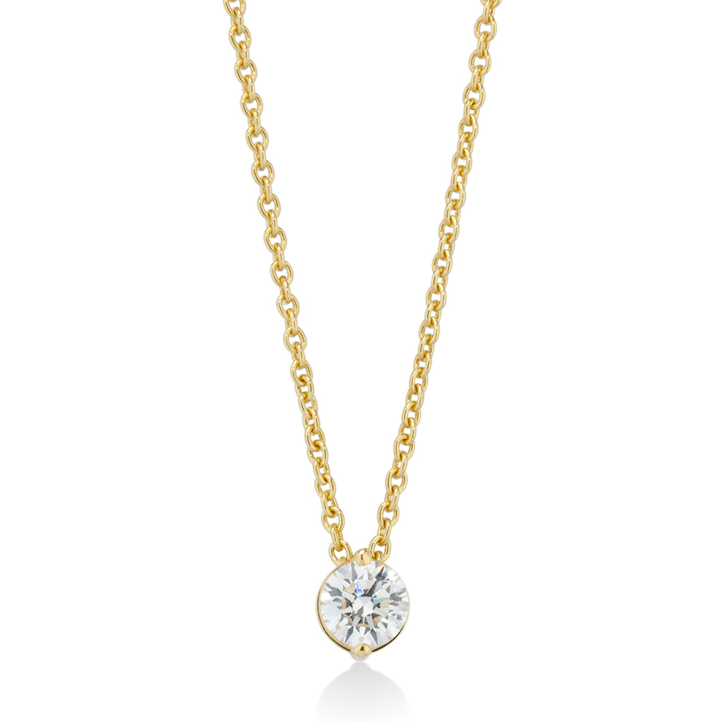18ct Yellow Gold Two Claw Set Round Brilliant Cut Diamond Pendant and Chain