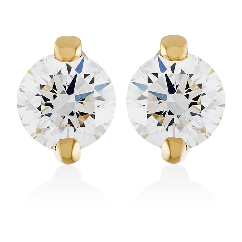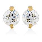 18ct Yellow Gold Two Claw Set Round Brilliant Cut Diamond Stud Earrings with a Post and Scroll Fitting