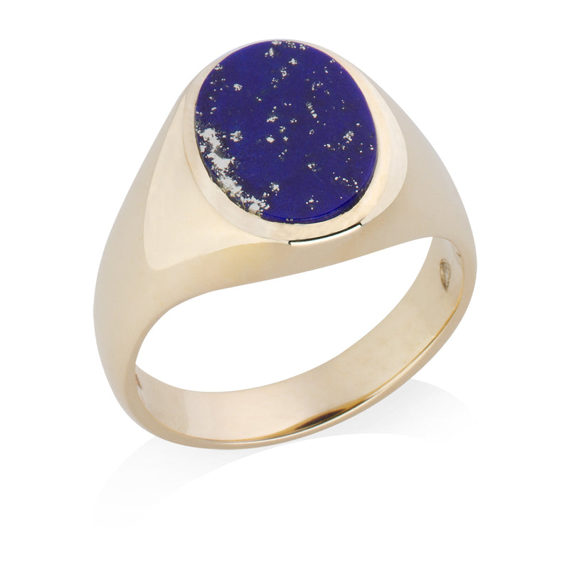9ct Yellow Gold Oval Lapis Gemset Signet Ring