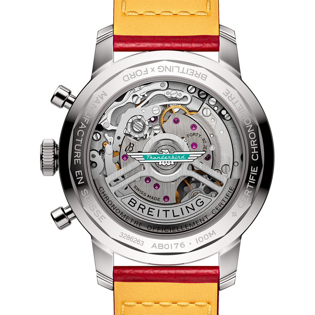 Breitling Top Time B01 Ford Thunderbird Steel 41mm White Baton Dial Watch with a Steel Polished Bezel on a Red...