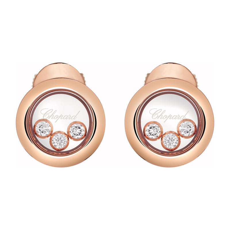 Chopard Happy Diamonds Icons 18ct Rose Gold Diamond Circular Stud Earrings with a Post and Disc Fitting