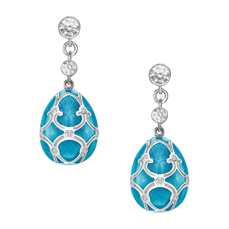 Fabergé Heritage 18ct White Gold Blue Enamel and Diamond Drop Earrings
