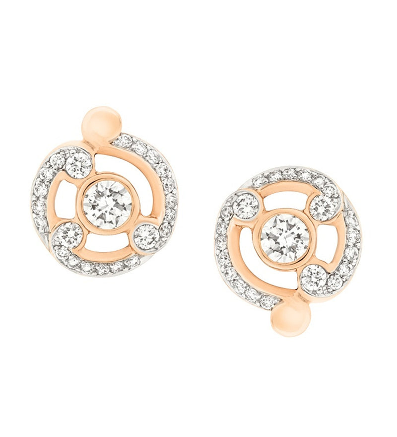 Fabergé Rococo 18ct Rose Gold Pink Enamel and Diamond Stud Earrings