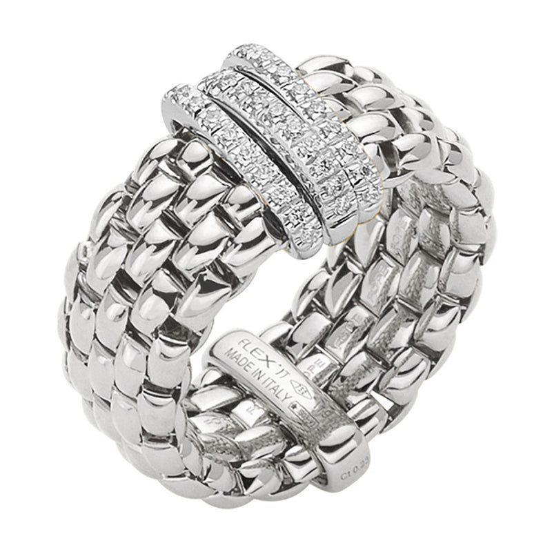 Fope Panorama Flex'It 18ct White Gold Ring with White Gold Diamond Set Rondels