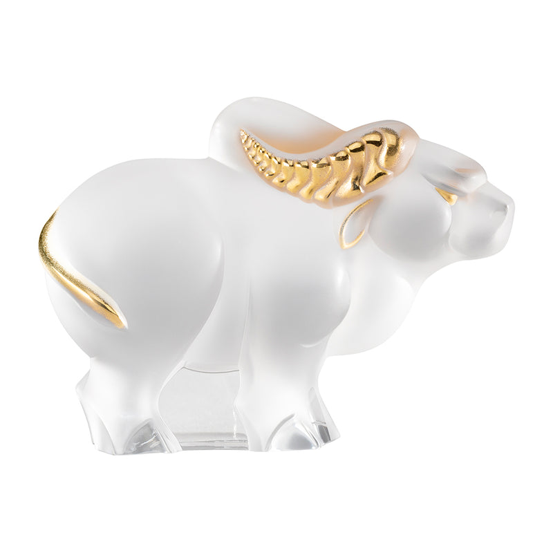 Lalique Ox Clear and Gold Stamped Crystal Sculpture
