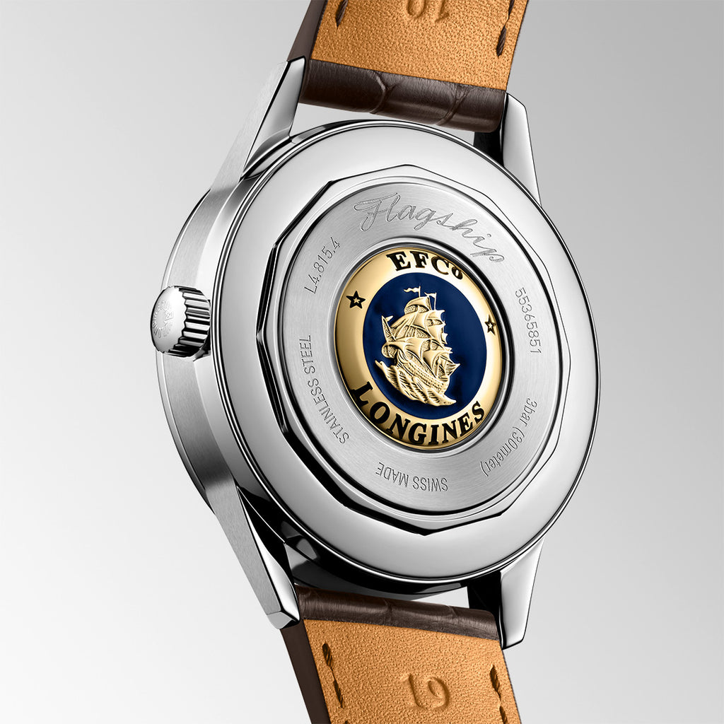 Longines Flagship Moonphase Steel 38.5mm Brown Baton Dial Watch with a Steel Polished Bezel on a Brown Alligator Strap