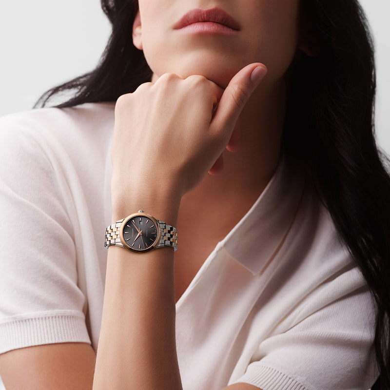Longines Flagship Steel and Rose Gold PVD 30mm Anthracite Baton Dial with a Rose Gold Bezel Watch on a Steel...