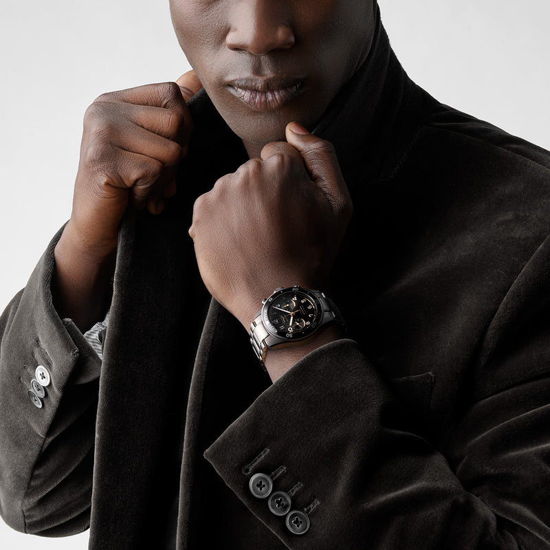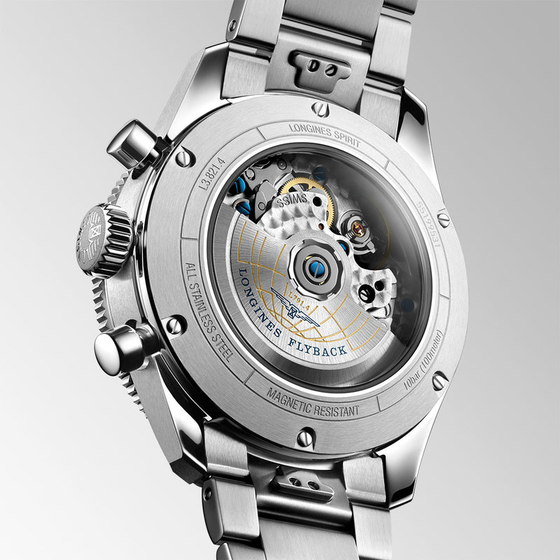 Longines Spirit Flyback Steel 42mm Black Sunray Arabic Dial Watch with a Black Ceramic Bidirectional Bezel on a Brushed and...