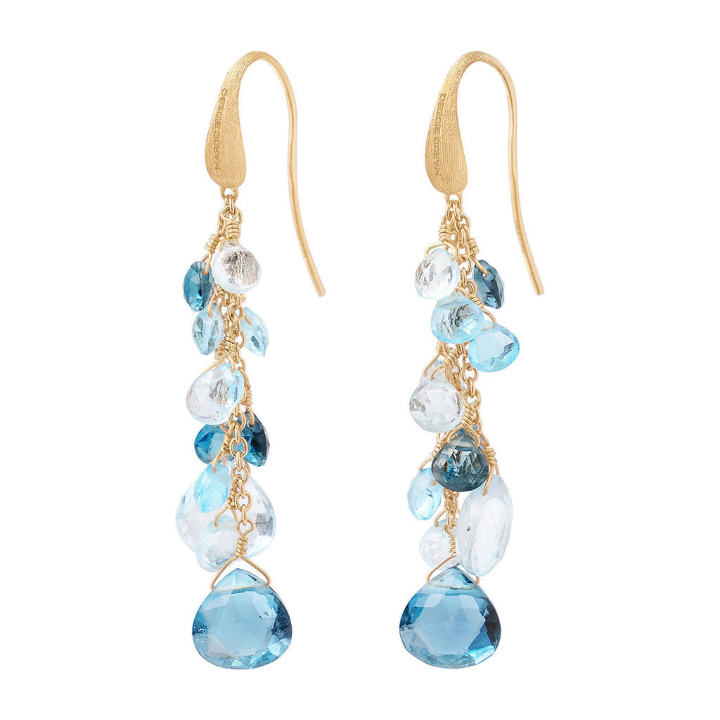 Marco Bicego Paradise 18ct Yellow Gold Mixed Blue Topaz Drop Earrings with a Hook Fitting