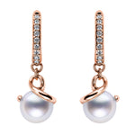 Mikimoto Twist 18ct Rose Gold Akoya Cultured Pearl and Diamond Drop Earrings with a Post and Hinge Fitting