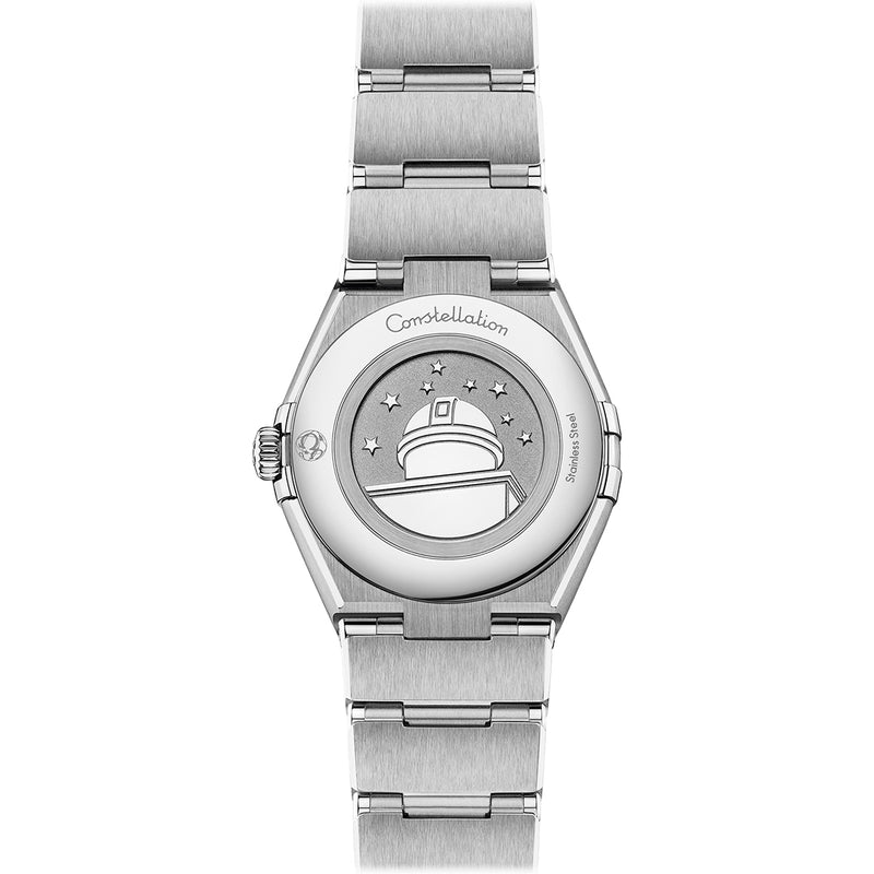 Omega Constellation Steel 28mm Purple Diamond Dot Dial Watch with a Steel Brushed Bezel on a Steel Bracelet