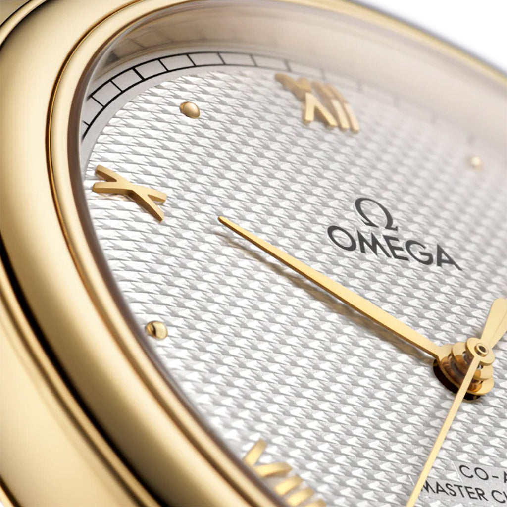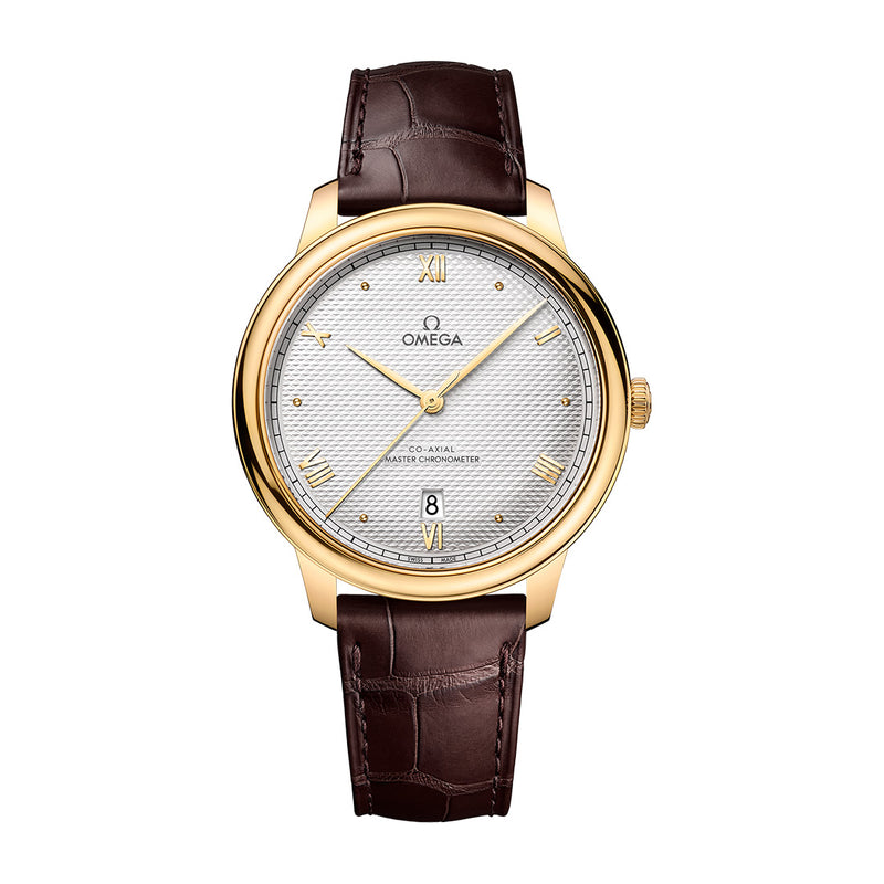 Omega De Ville Prestige 18ct Yellow Gold 40mm Silver Patterned Baton and Roman Dial Watch with a Yellow Gold Polished...