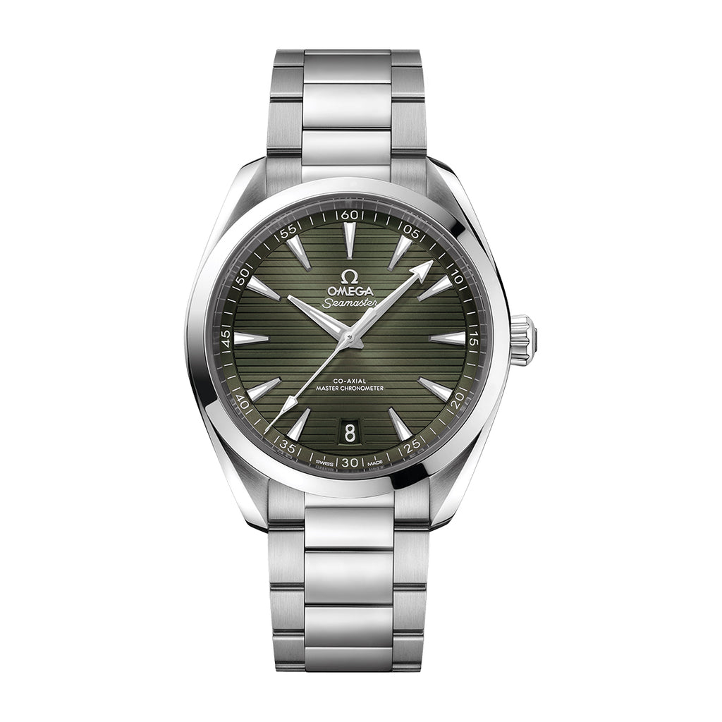 Omega Seamaster Aqua Terra 150M Steel Green Patterned Baton Dial Watch with a Steel Polished Bezel on a Brushed and...
