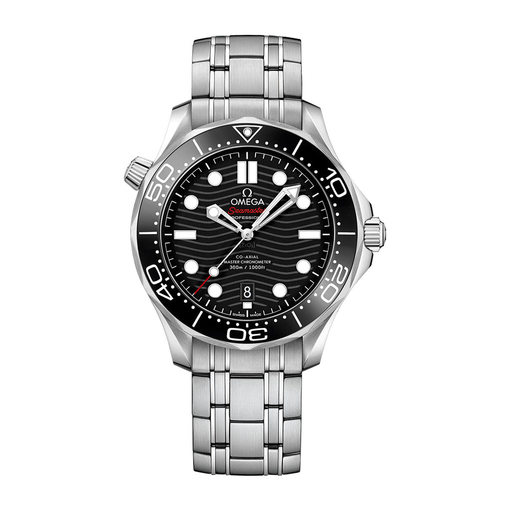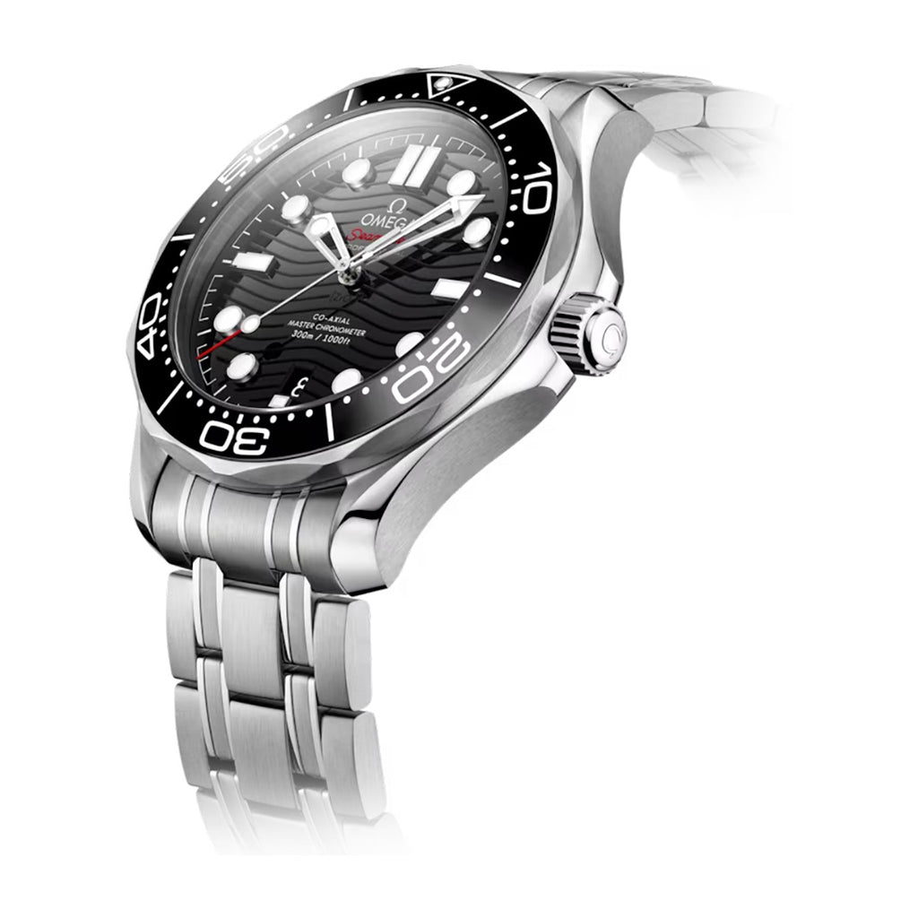 Omega Seamaster Diver 300M Steel Black Embossed Luminous Marker Dial Watch with a Black Ceramic Rotating Bezel on a Steel...