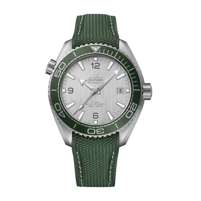Omega Seamaster Planet Ocean 600M Steel 43.5mm Grey Arabic and Baton Dial Watch with a Green Ceramic Unidirectional Bezel on...