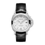 Panerai Luminor 3 Days Steel 40mm White Arabic and Baton Dial Watch with a Steel Polished Bezel on a Black...