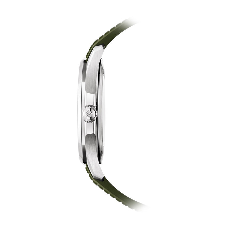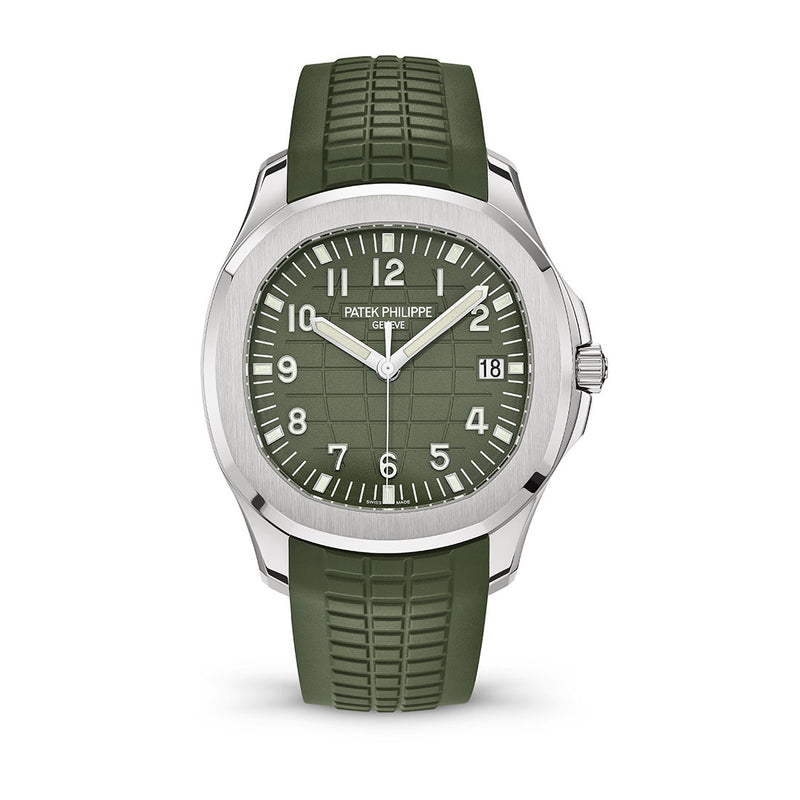 Patek Philippe Aquanaut 18ct White Gold Green Embossed Arabic Dial Watch with a White Gold Brushed Bezel on a Green...