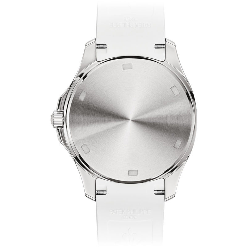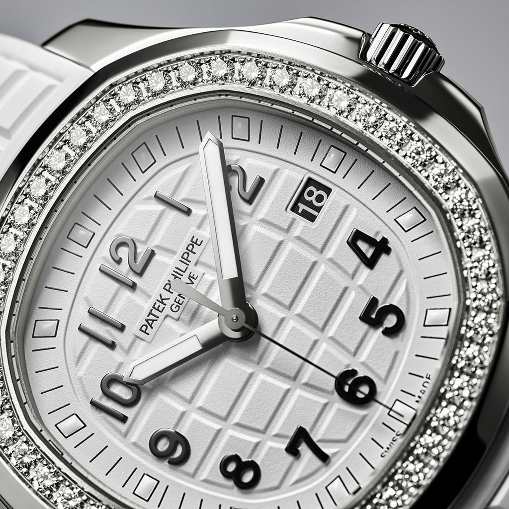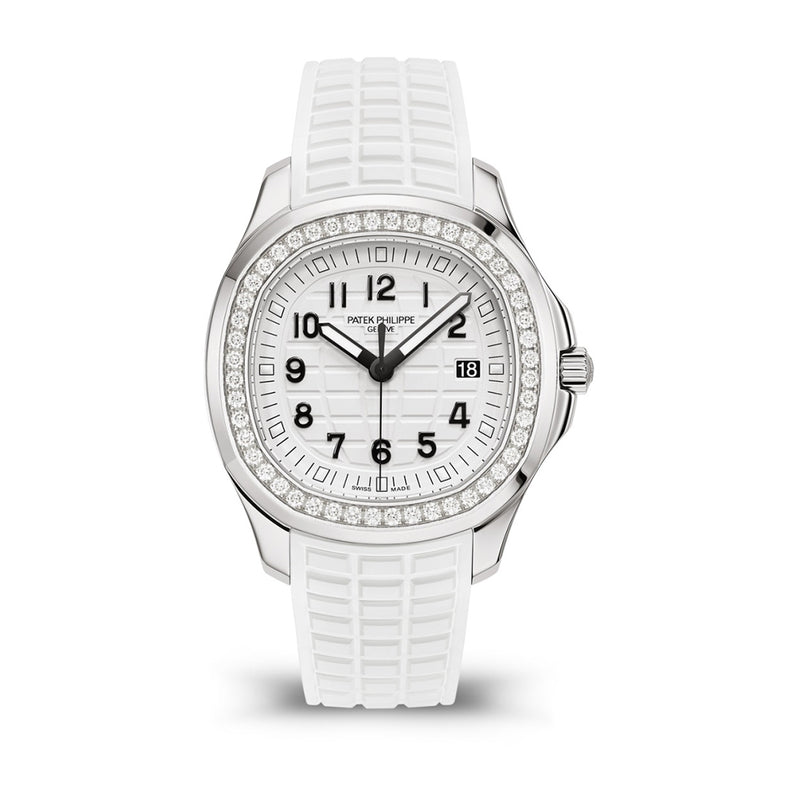 Patek Philippe Aquanaut Luce Steel 38.8mm White Embossed Arabic Dial Watch with a Steel Diamond Set Bezel on a White...