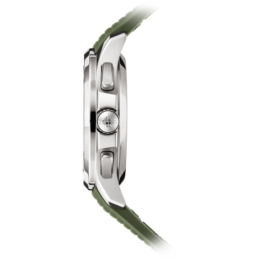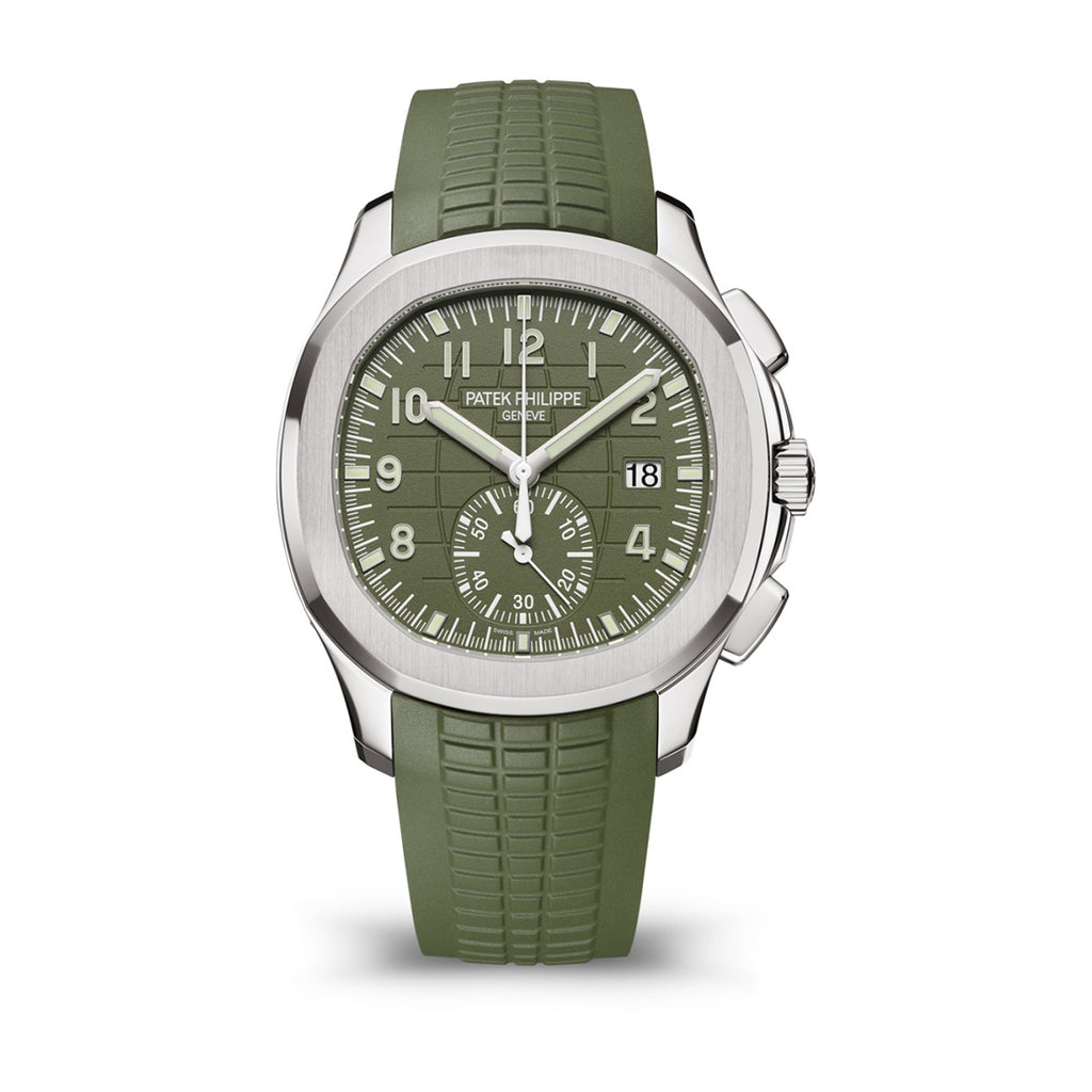 Patek Philippe Aquanaut Chronograph18ct White Gold Green Embossed Arabic Dial Watch with a White Gold Brushed Bezel on a Green...