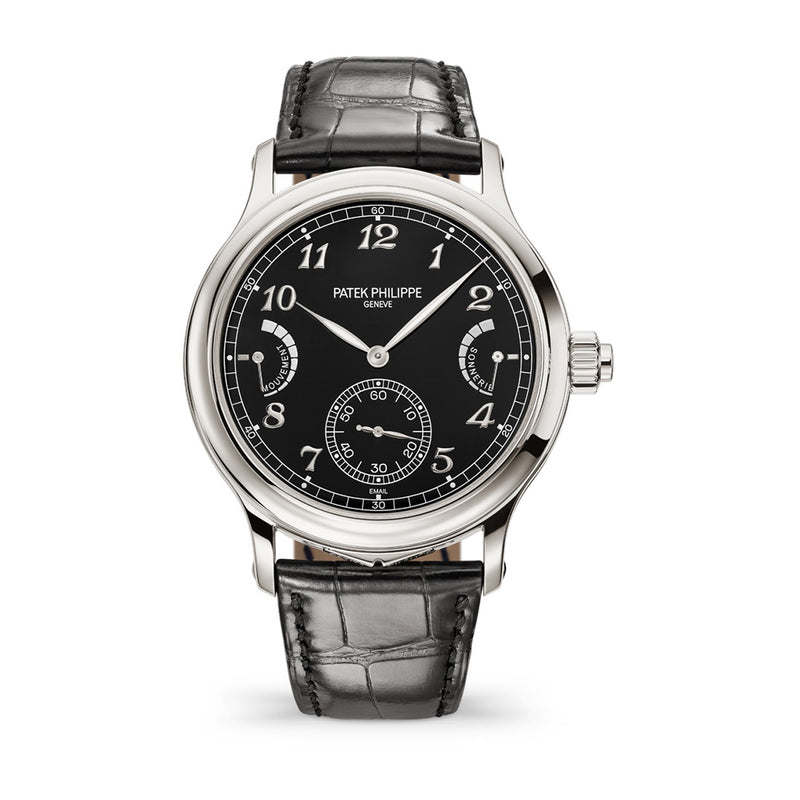 Patek Philippe Grand Complications Grande and Petite Sonnerie Platinum 44.8mm Black Enamel Breguet Numeral Dial Watch with a Platinum Polished...