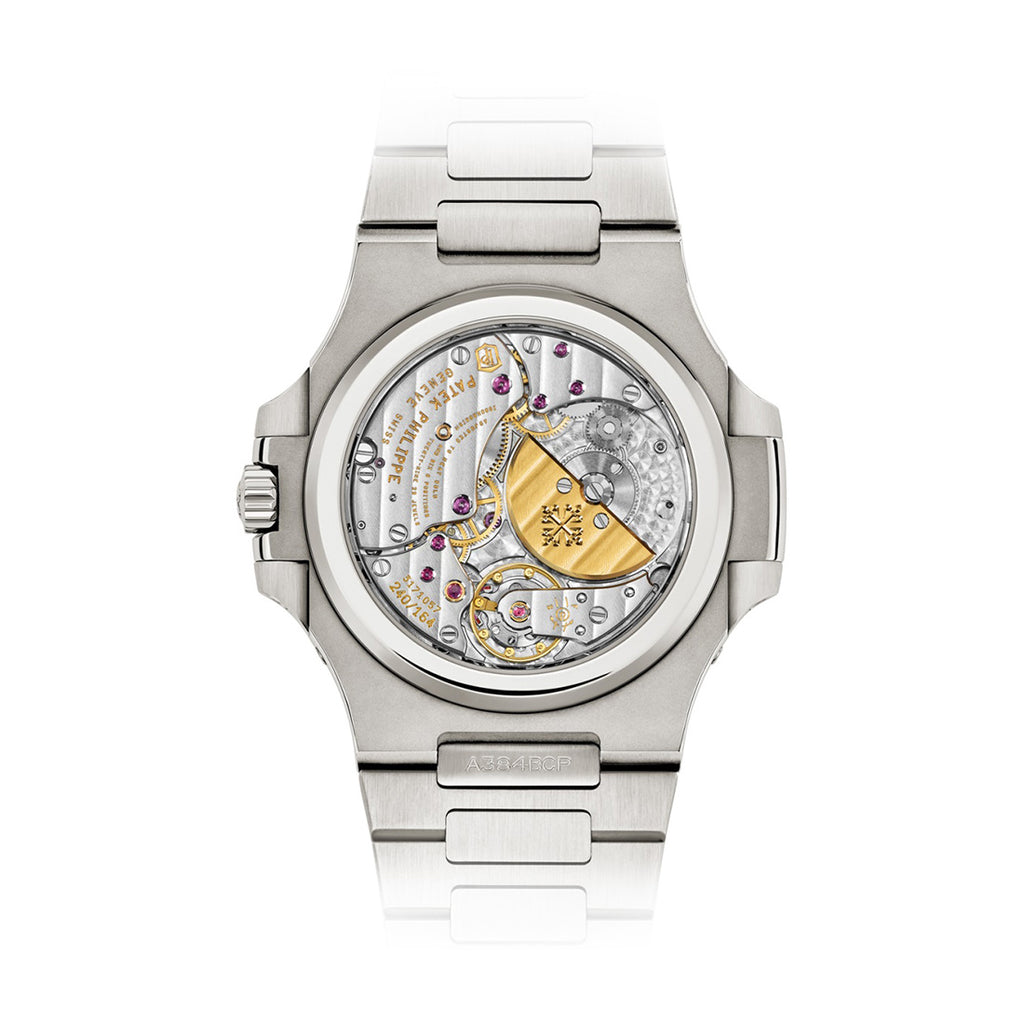 Patek Philippe Nautilus Moon Phases Steel Blue Gradated Baton Dial Watch with a Steel Brushed Bezel on a Brushed and...