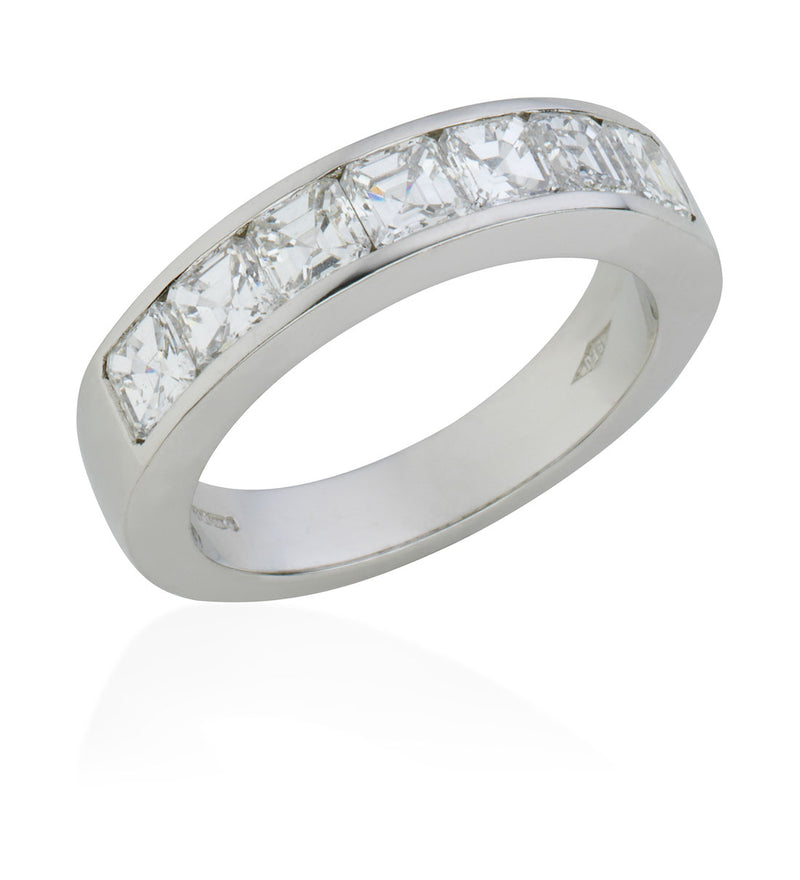 Platinum Channel Set Asscher Cut Diamond Half Eternity Ring Total Diamond Weight: 1.65ct