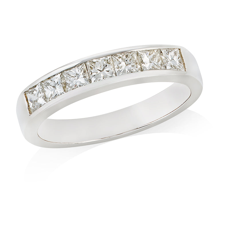 Platinum Channel Set Princess Cut Diamond Half Eternity Ring