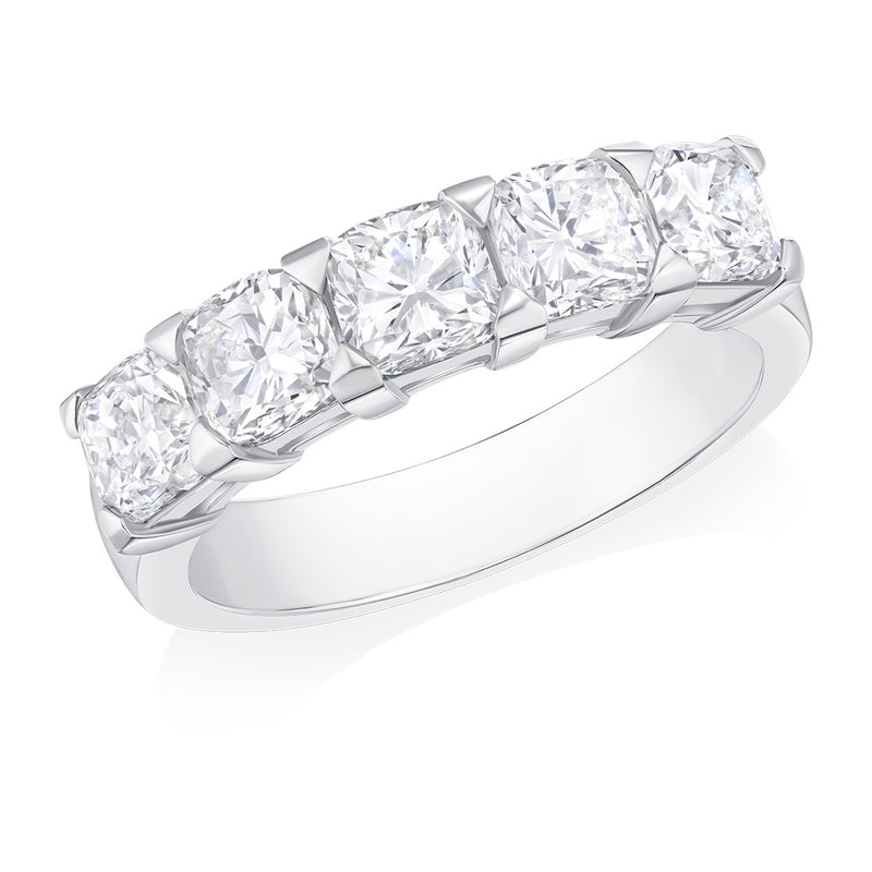 Platinum Four Claw Set Cushion Cut Diamond Half Eternity Ring