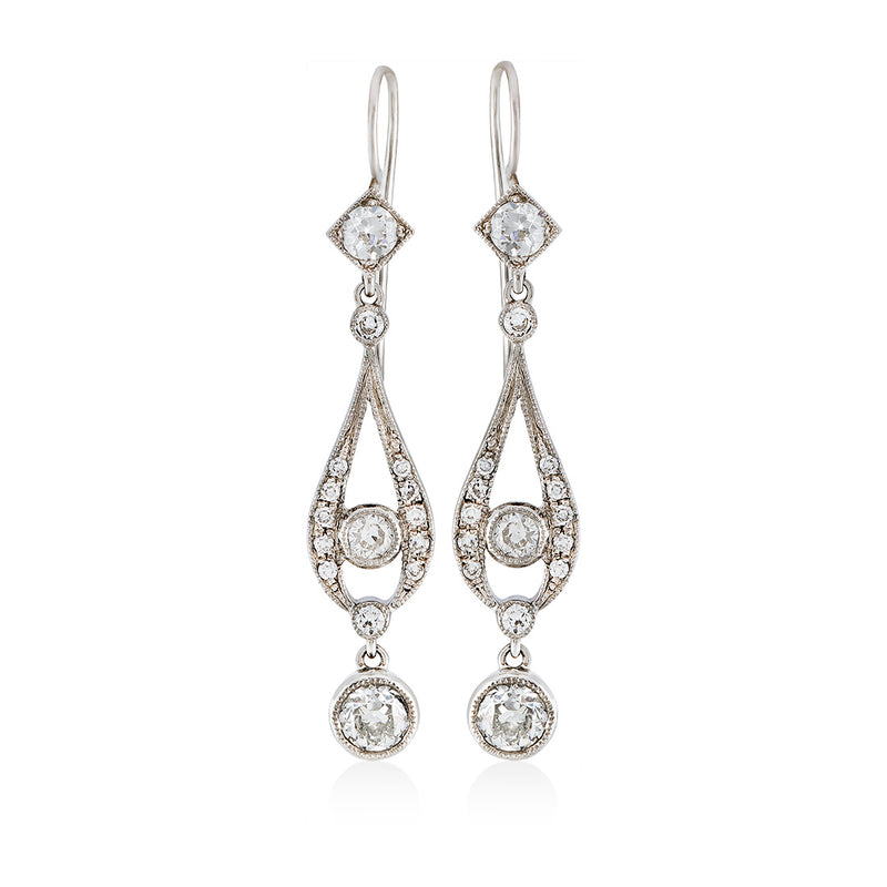 Pre-Owned Remodelled Platinum Milgrain Edge Rub Set Old Cut Diamond Drop Earrings with a Hook Fitting