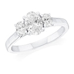 Platinum Three Stone Four Claw Set Oval Cut Diamond Ring with Plain Shoulders