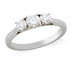 Platinum Three Stone Four Claw Set Round Brilliant Cut Diamond Ring with Tapered Shoulders