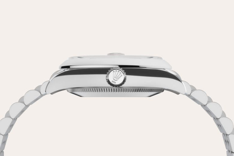 The sunray finish creates delicate light reflections on many dials in the Oyster Perpetual collection. It is obtained using masterful brushing techniques that create grooves running outwards from the centre of the dial. Light is diffused consistently along each engraving, creating a characteristic subtle glow that moves depending on the position of the wrist. Once the sunray finish has been completed, the dial colour is applied using Physical Vapour Deposition or electroplating. A light coat of varnish gives the dial its final look.
