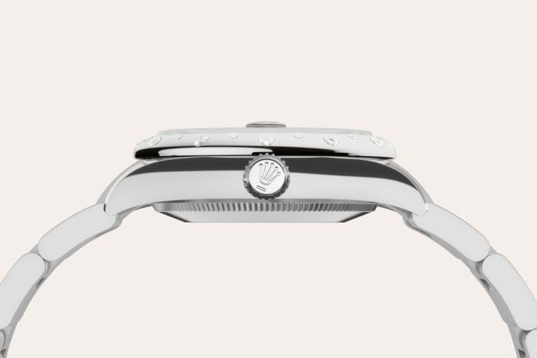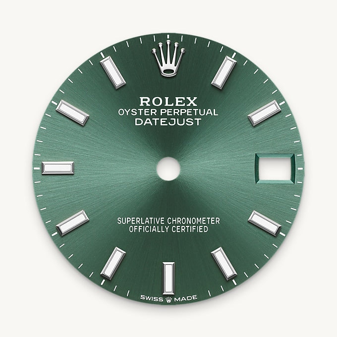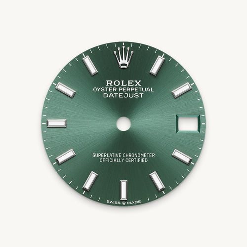 The sunray finish creates delicate light reflections on many dials in the Oyster Perpetual collection. It is obtained using masterful brushing techniques that create grooves running outwards from the centre of the dial.