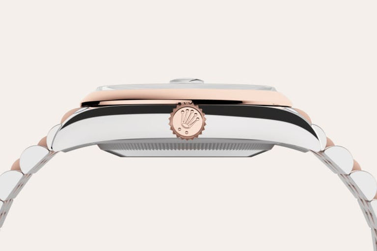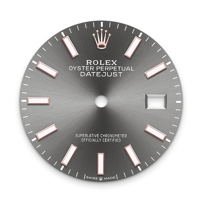 The sunray finish creates delicate light reflections on many dials in the Oyster Perpetual collection. It is obtained using masterful brushing techniques that create grooves running outwards from the centre of the dial. Light is diffused consistently along each engraving, creating a characteristic subtle glow that moves depending on the position of the wrist. Once the sunray finish has been completed, the dial colour is applied using Physical Vapour Deposition or electroplating. A light coat of varnish gives the dial its final look.