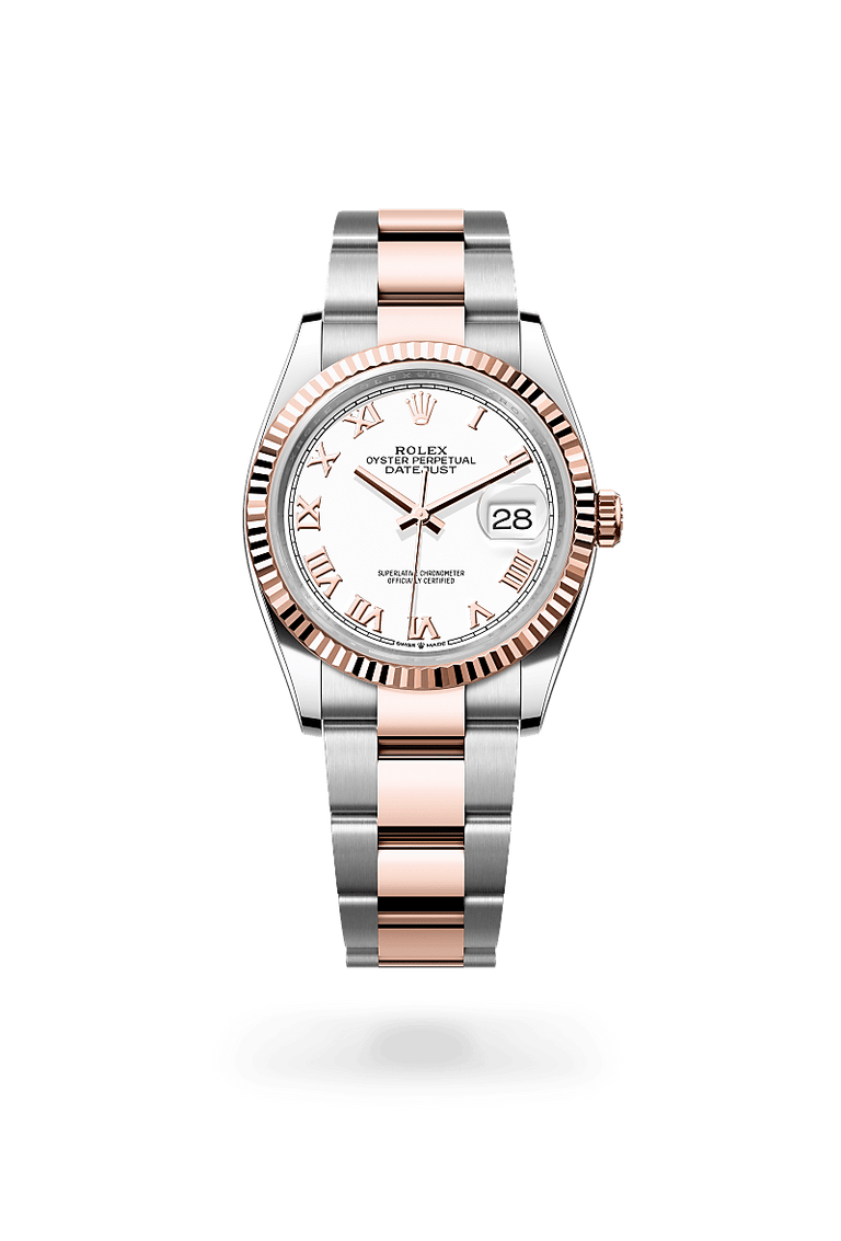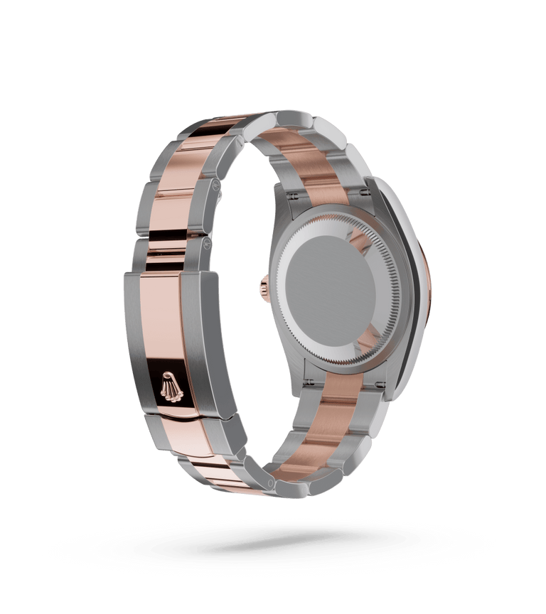 The Rolex fluted bezel is a mark of distinction. Originally, the fluting of the Oyster bezel had a functional purpose: it served to screw the bezel onto the case helping to ensure the waterproofness of the watch. It was therefore identical to the fluting on the case back, which was also screwed onto the case for waterproofness, using specific Rolex tools. Over time, the fluting became an aesthetic element, a genuine Rolex signature feature. Today the fluted bezel is a mark of distinction, in gold on this Datejust 36.