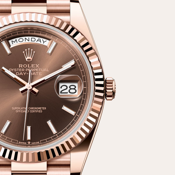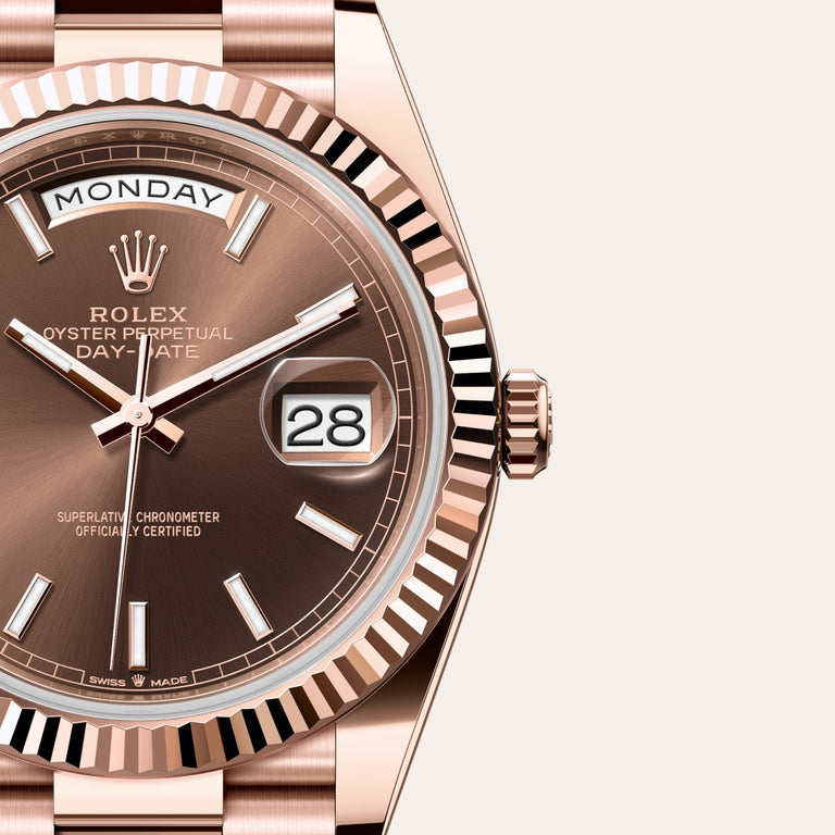 The sunray finish creates delicate light reflections on many dials in the Oyster Perpetual collection. It is obtained using masterful brushing techniques that create grooves running outwards from the centre of the dial.