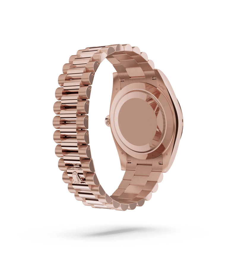 The Rolex fluted bezel is a mark of distinction. Originally, the fluting of the Oyster bezel had a functional purpose: it served to screw the bezel onto the case helping to ensure the waterproofness of the watch. It was therefore identical to the fluting on the case back, which was also screwed onto the case for waterproofness, using specific Rolex tools. Over time, the fluting became an aesthetic element, a genuine Rolex signature feature. Today the fluted bezel is a mark of distinction, in gold on this Day-Date 40.