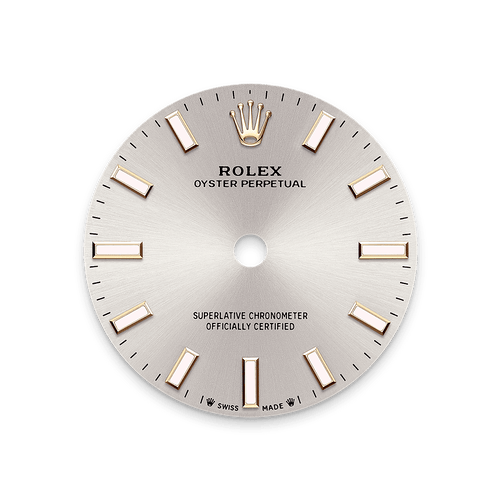 The sunray finish creates delicate light reflections on many dials in the Oyster Perpetual collection. It is obtained using masterful brushing techniques that create grooves running outwards from the centre of the dial. Light is diffused consistently along each engraving, creating a characteristic subtle glow that moves depending on the position of the wrist. Once the sunray finish has been completed, the dial colour is applied using Physical Vapour Deposition or electroplating. A light coat of varnish gives the dial its final look.