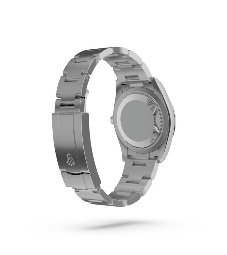 The sunray finish creates delicate light reflections on many dials in the Oyster Perpetual collection. It is obtained using masterful brushing techniques that create grooves running outwards from the centre of the dial. Light is diffused consistently along each engraving, creating a characteristic subtle glow that moves depending on the position of the wrist. Once the sunray finish has been completed, the dial colour is applied using Physical Vapour Deposition or electroplating. A light coat of varnish gives the dial its final look.