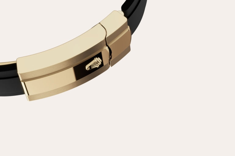 The blade is overmoulded with high-performance black elastomer which is particularly resistant to environmental effects, very durable and perfectly inert for the wearer of the watch. For enhanced comfort, the inside of the Oysterflex bracelet is equipped with a patented longitudinal cushion system that stabilizes the watch on the wrist and fitted with an 18 ct yellow gold Oysterclasp. It also features the Rolex Glidelock extension system, designed by the brand and patented. This inventive toothed mechanism, integrated beneath the clasp, allows fine adjustment of the bracelet length by some 15 mm in increments of approximately 2.5 mm, without the use of tools.
