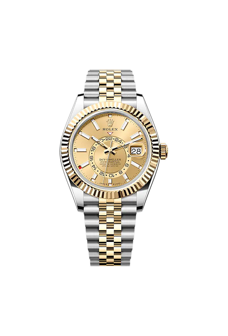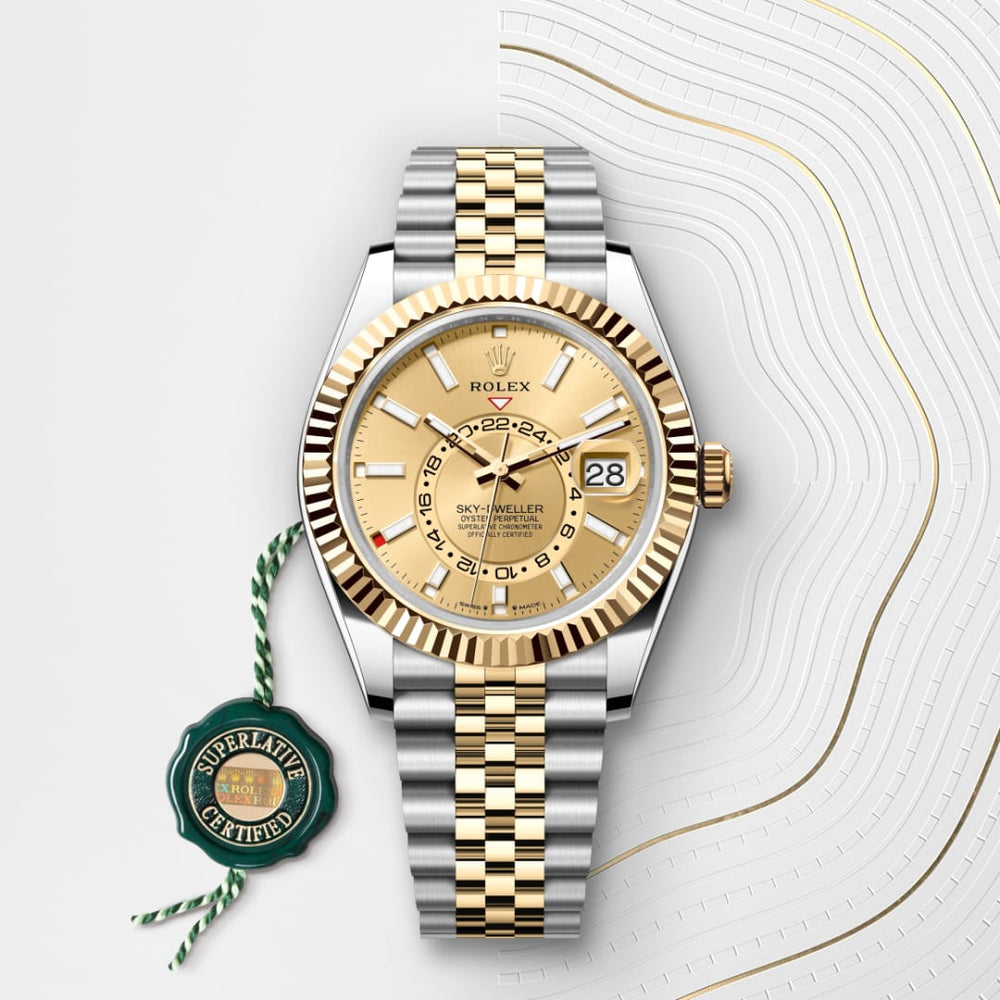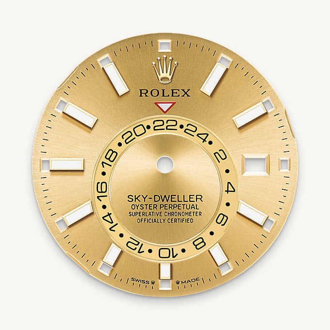 A fixed inverted red triangle on the dial points to the chosen reference time – the time at home or at the traveller’s usual workplace – on the off-centre 24-hour disc. At a glance, this 24-hour display clearly distinguishes daytime hours from night-time hours in the other time zone.