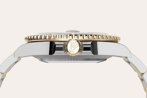 Gold is coveted for its lustre and nobility. Steel reinforces strength and reliability. Together, they harmoniously combine the best of their properties. A true Rolex signature, Rolesor has featured on Rolex models since the early 1930s, and was trademarked as a name in 1933. It is one of the prominent pillars of the Oyster collection.