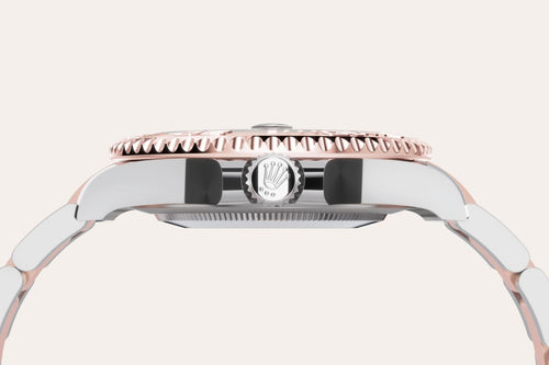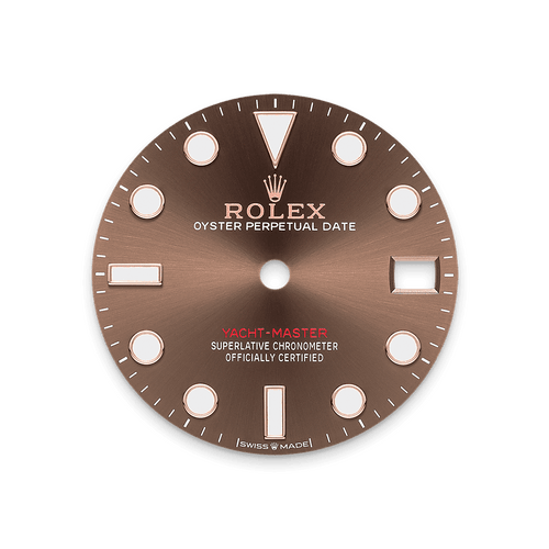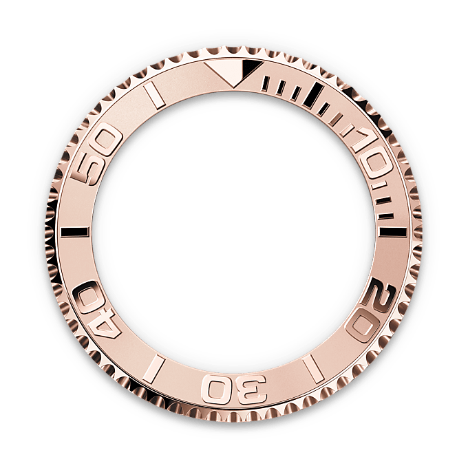 The Yacht-Master’s bidirectional rotatable 60-minute graduated bezel is made entirely from precious metals or fitted with a Cerachrom insert in high-tech ceramic. The raised polished numerals and graduations stand out clearly against a matt, sand-blasted background. This functional bezel – which allows the wearer to calculate, for example, the sailing time between two buoys – is also a key component in the model’s distinctive visual identity.
