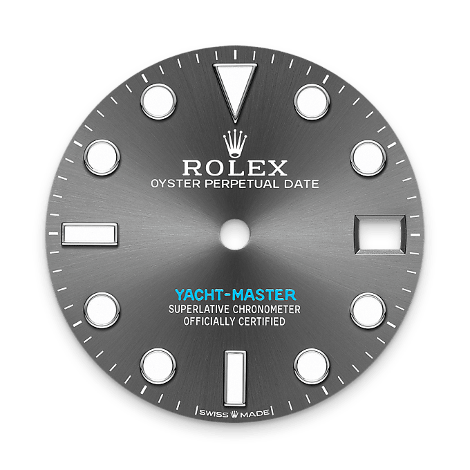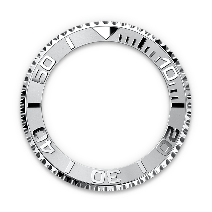 The Yacht-Master’s bidirectional rotatable 60-minute graduated bezel is made entirely from precious metals or fitted with a Cerachrom insert in high-tech ceramic. The raised polished numerals and graduations stand out clearly against a matt, sand-blasted background. This functional bezel – which allows the wearer to calculate, for example, the sailing time between two buoys – is also a key component in the model’s distinctive visual identity.