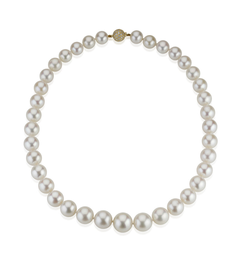 Southsea Pearl Graduated Necklace with an 18ct Yellow Gold Diamond Ball Clasp