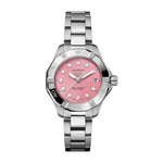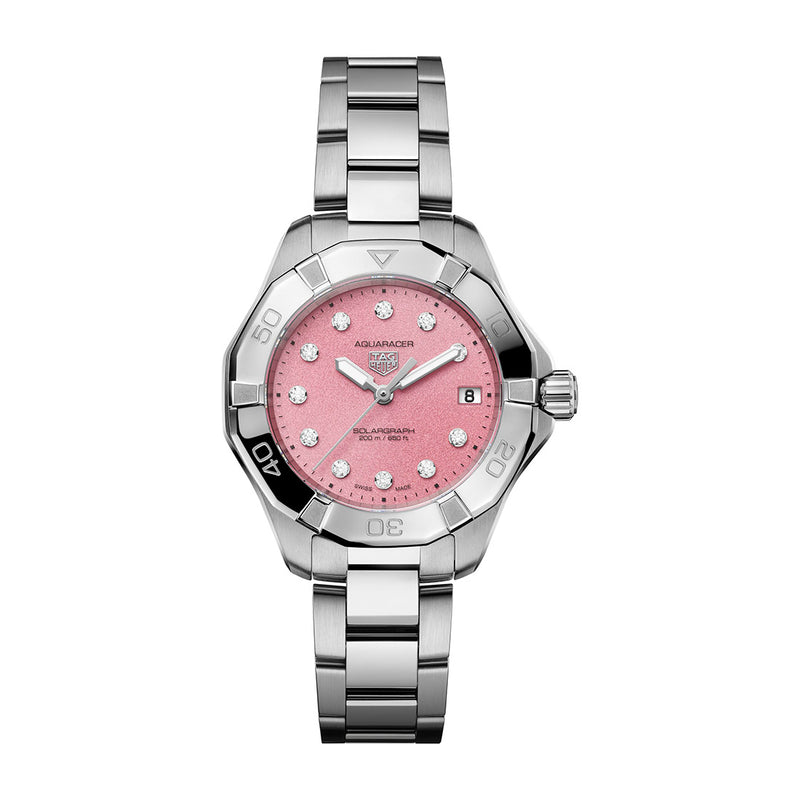 TAG Heuer Aquaracer Professional 200 Solargraph Steel 34mm Pink Diamond Dot Dial Watch with a Steel Unidirectional Bezel on a...