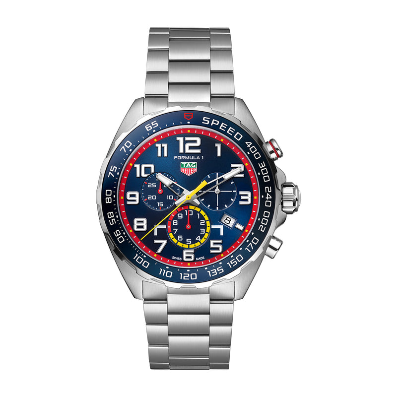 TAG Heuer Formula 1 Red Bull Racing Chronograph Steel 43mm Blue Baton Dial Watch with a Blue Aluminum Bezel on...