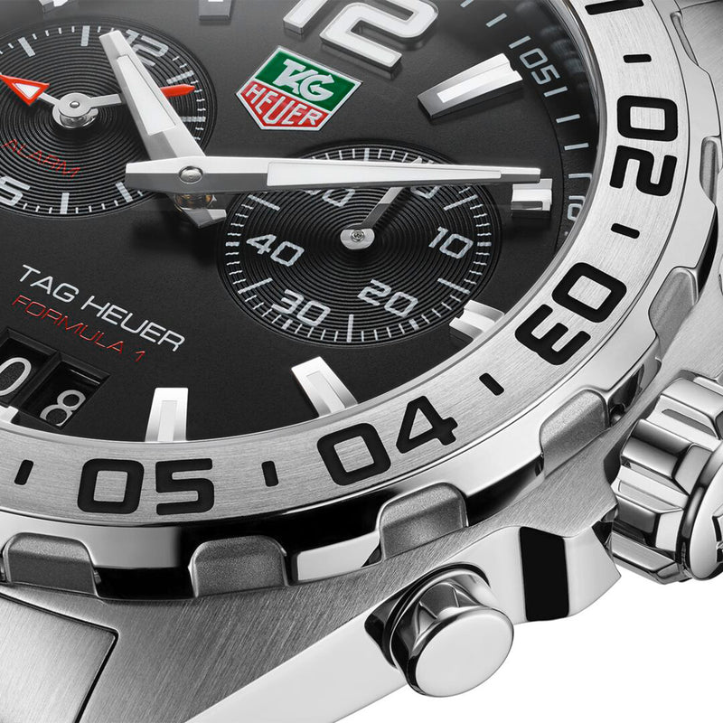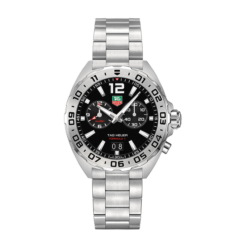 TAG Heuer Formula 1 Steel Black Arabic and Baton Dial Watch with a Steel Engraved Bezel on a Brushed Steel...